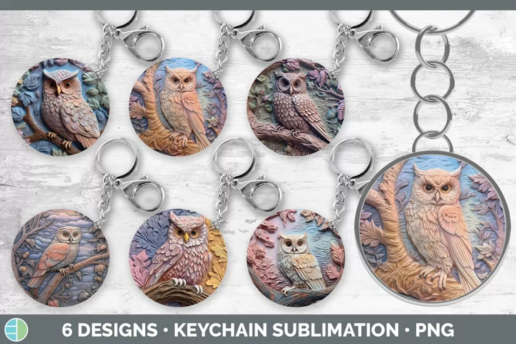 3D Owl Bird Keychain | Sublimation Keyring Designs Bundle