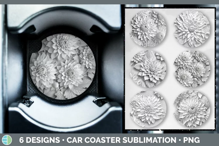 3D Dahlia Flowers Car Coaster | Sublimation Coaster Designs