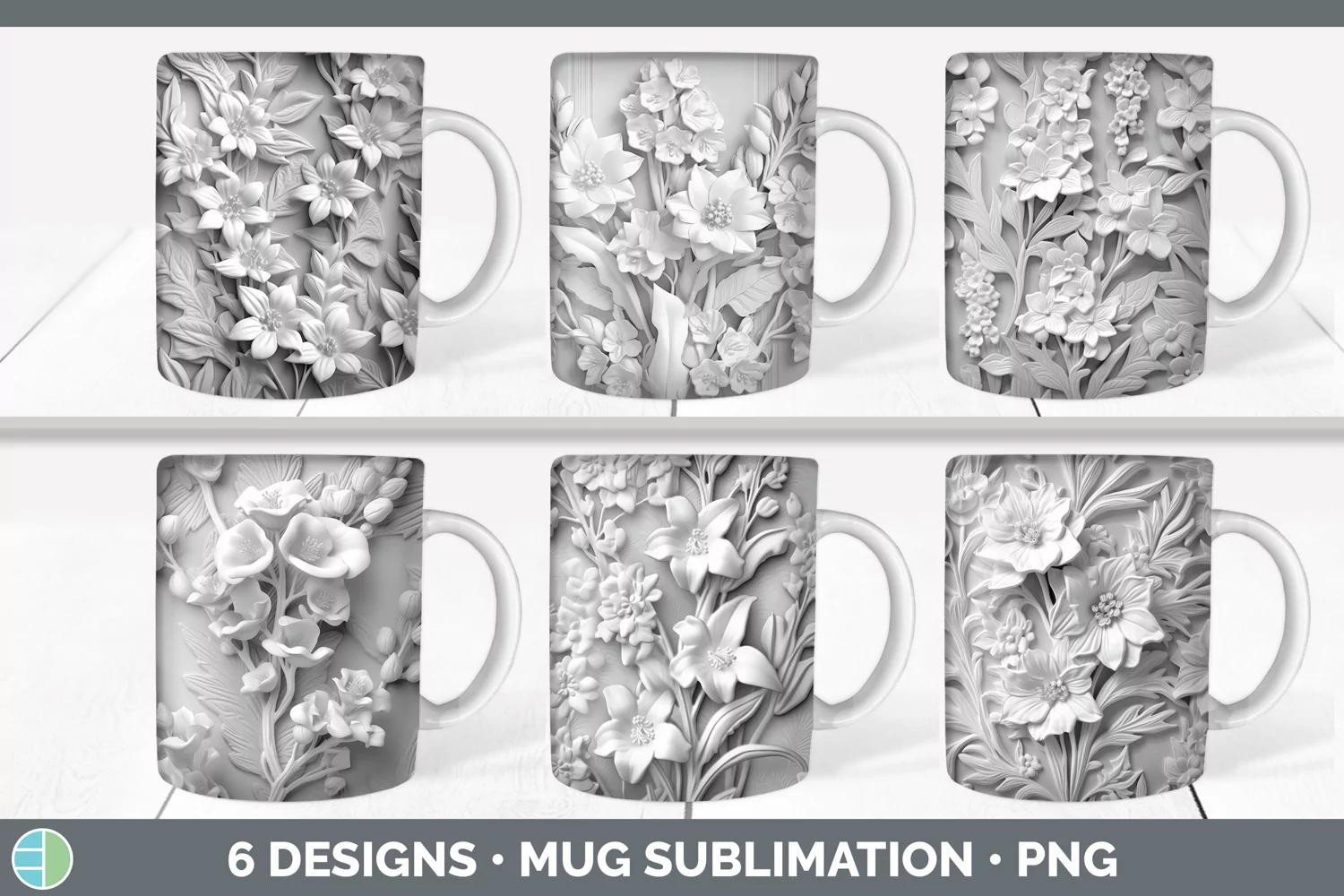 Discover a world of floral wonders with these enchanting 3D floral designs for sublimation mugs. This digital download includes a set of 6 PNG files that will spark your imagination and bring your coffee cups to life. Crafters can explore the intricate details and vibrant colors of these designs, creating mugs that are as beautiful as they are functional. Each design captures the essence of nature's beauty, adding a touch of elegance and sophistication to your coffee-drinking experience. Whether you're sipping your favorite brew alone or sharing your creations with others, these 3D sublimation mug designs will awaken your creativity and make every cup of coffee a moment to cherish.