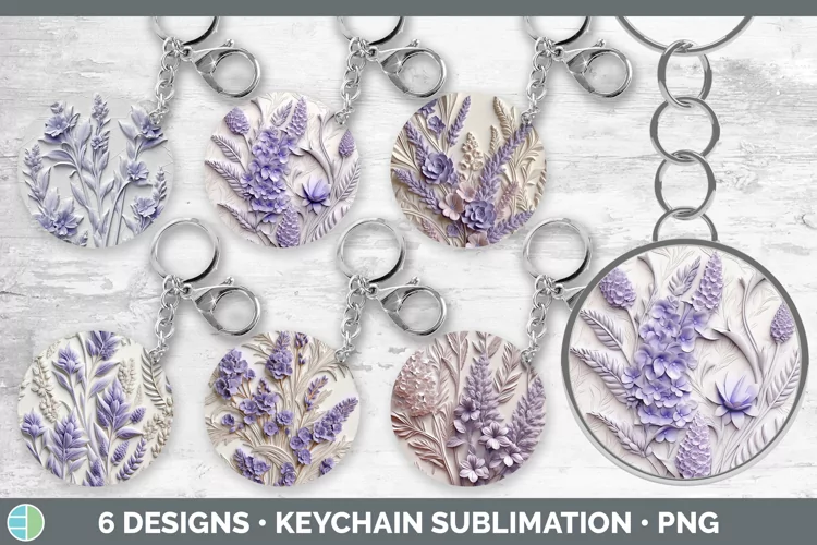 Similar Design Products to 3D Lavender Flowers Keychain | Sublimation Keyring Designs B