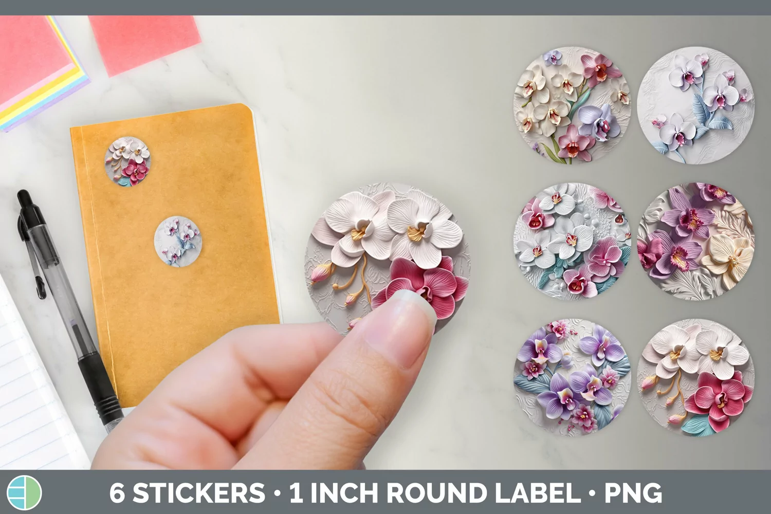 Similar Design Products to 3D Orchid Flowers Stickers | Round Labels Designs Bundle