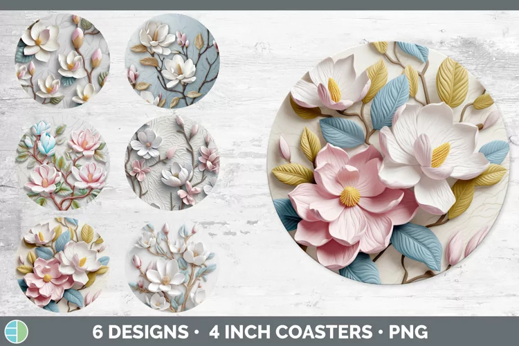 Similar Design Products to 3D Magnolia Flowers Round Coaster | Sublimation Coaster Desi