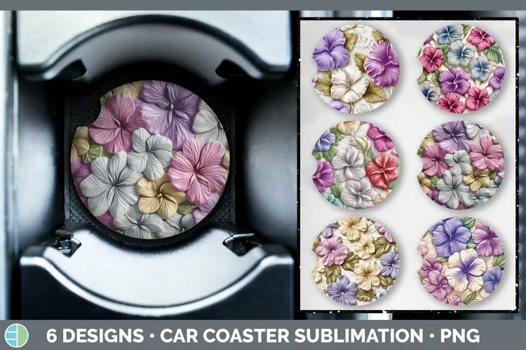 Similar Design Products to 3D Petunia Flowers Car Coaster | Sublimation Coaster Designs