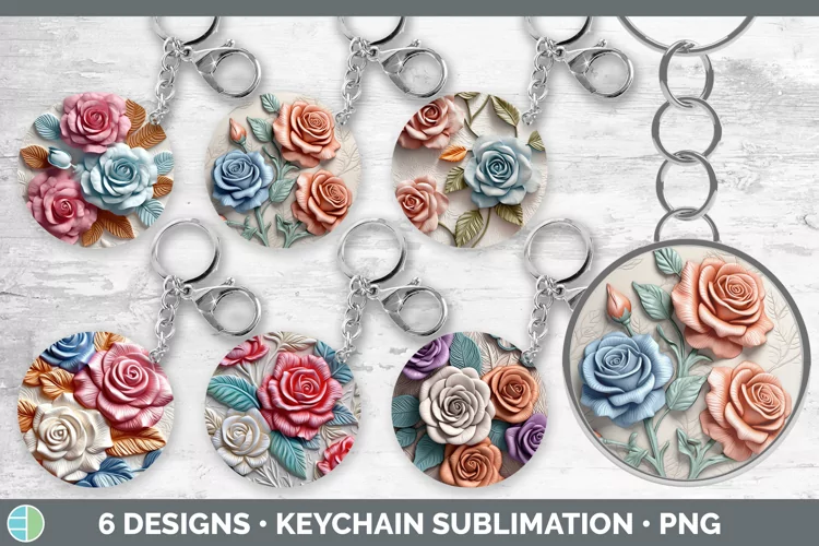 3D Rose Flowers Keychain | Sublimation Keyring Designs Bundl