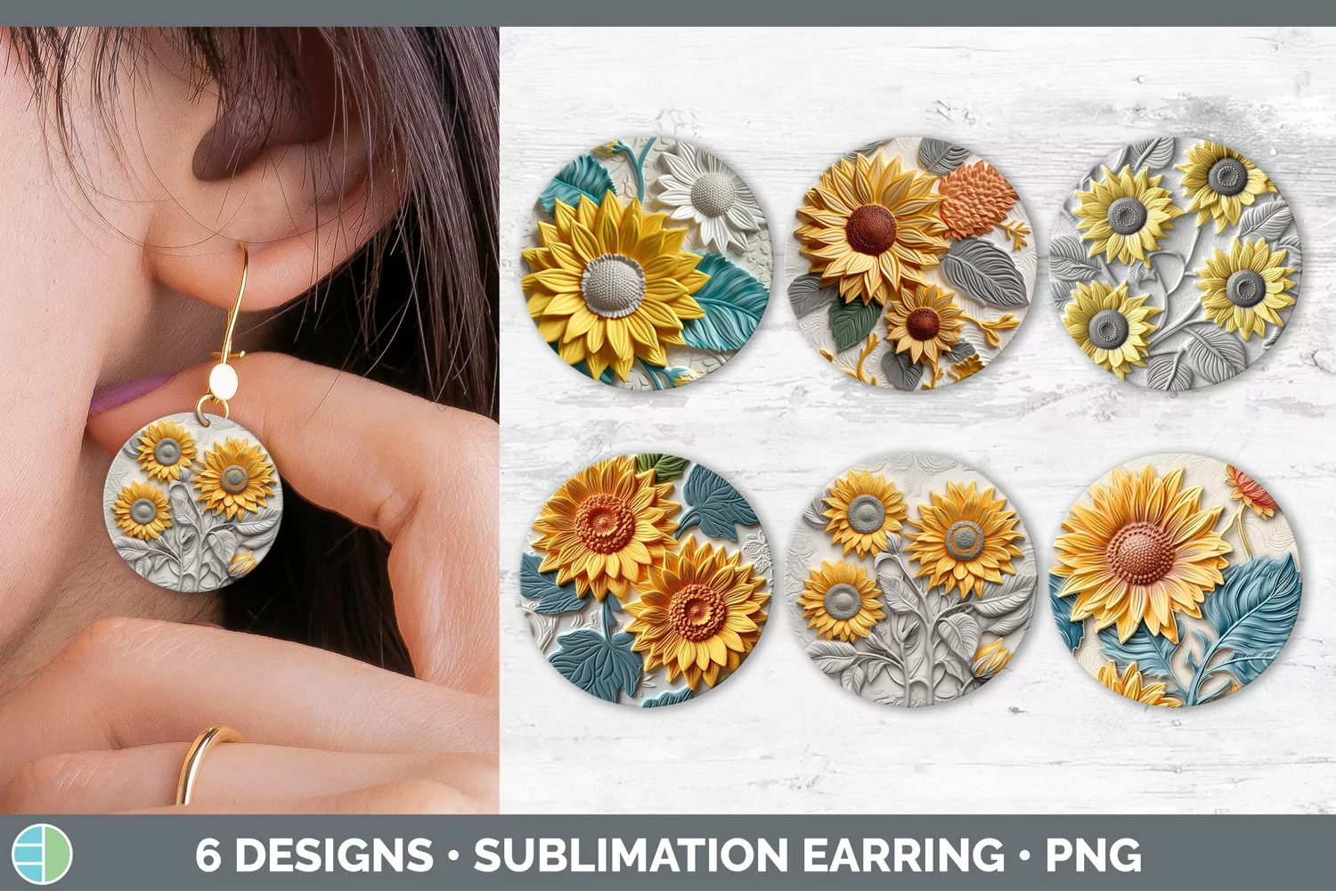 3D Sunflower Flowers Round Earrings | Sublimation Earrings D