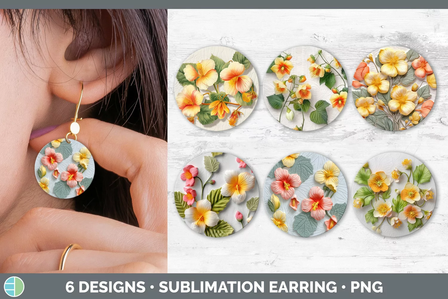 3D Abutilon Flowers Round Earrings | Sublimation Earrings De