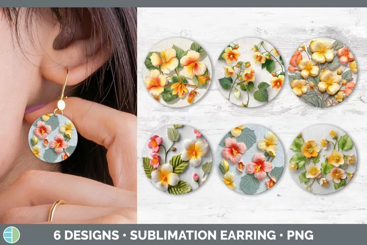 Similar Design Products to 3D Abutilon Flowers Round Earrings | Sublimation Earrings De