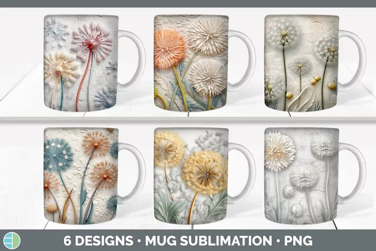 Similar Design Products to 3D Dandelion Flowers Mug Wrap | Sublimation Coffee Cup Desig