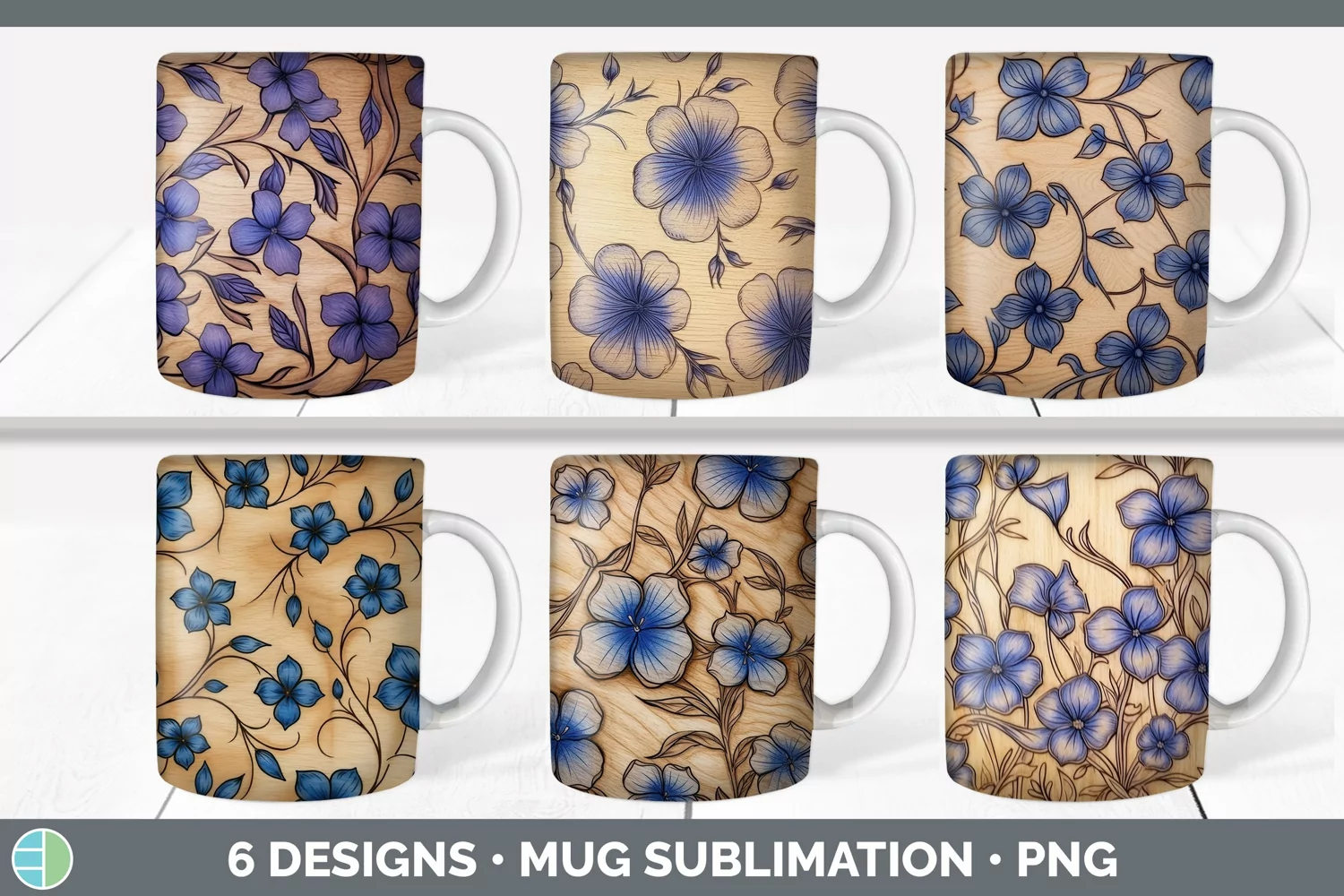 Wood Burned Periwinkle Flowers Mug Wrap | Sublimation Coffee