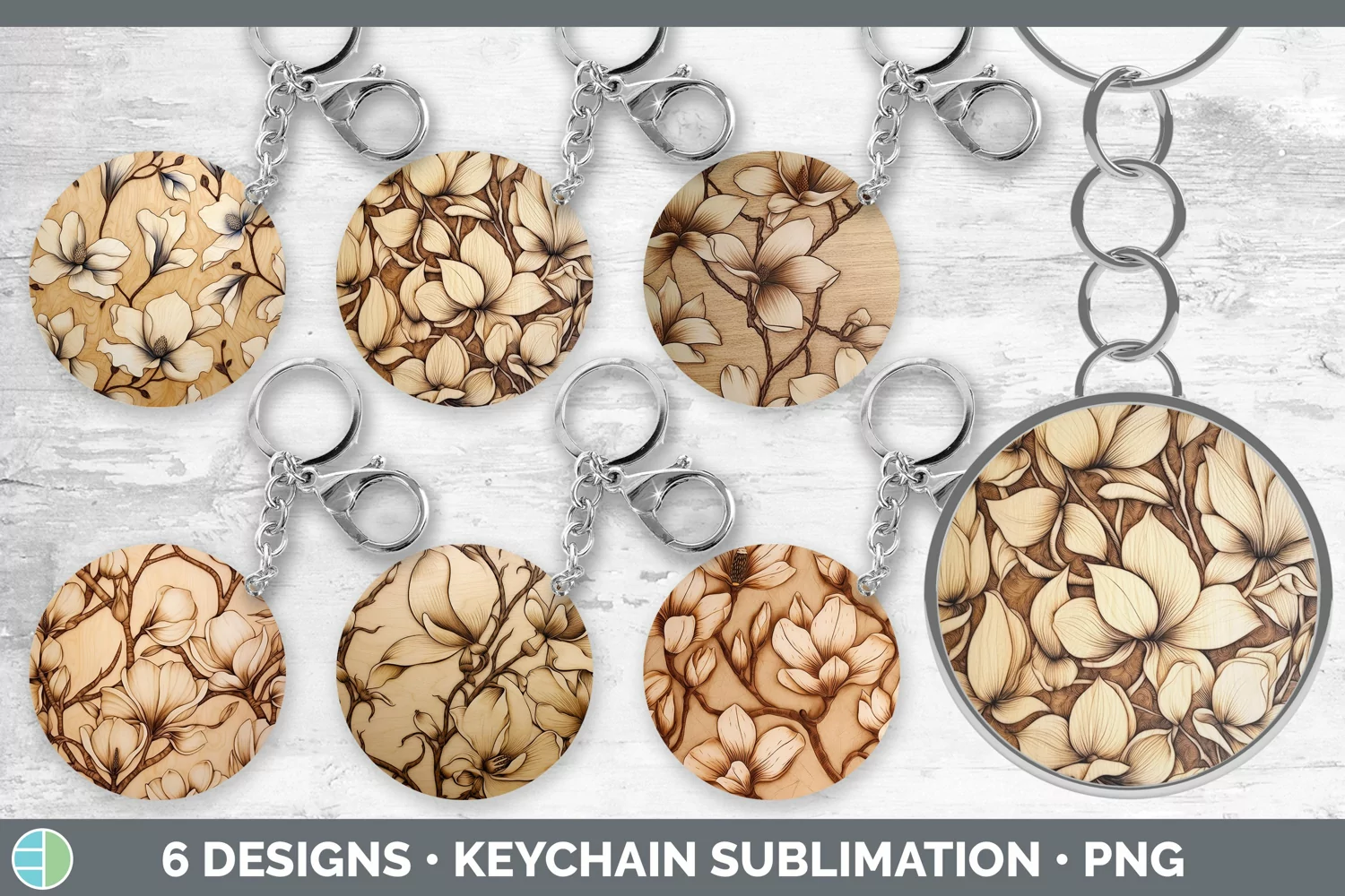 Similar Design Products to Wood Burned Magnolia Flowers Keychain | Sublimation Keyring