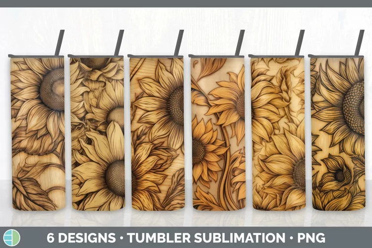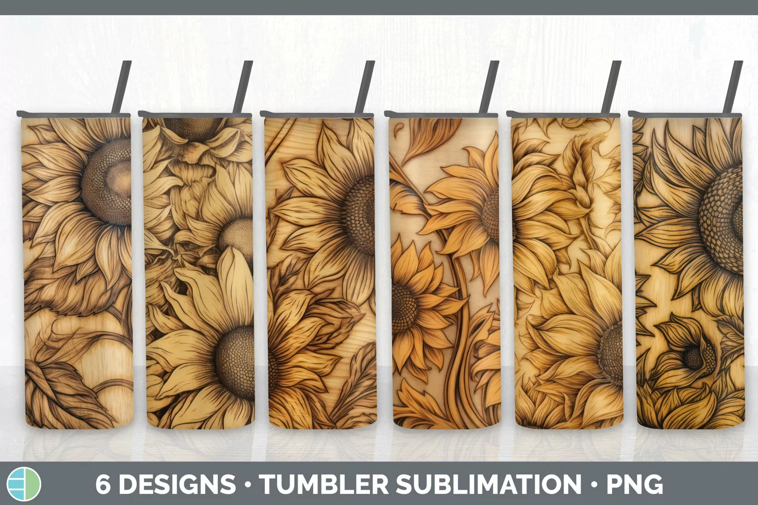 Bundle of six Pyrographic Sunflowers Tumbler designs.