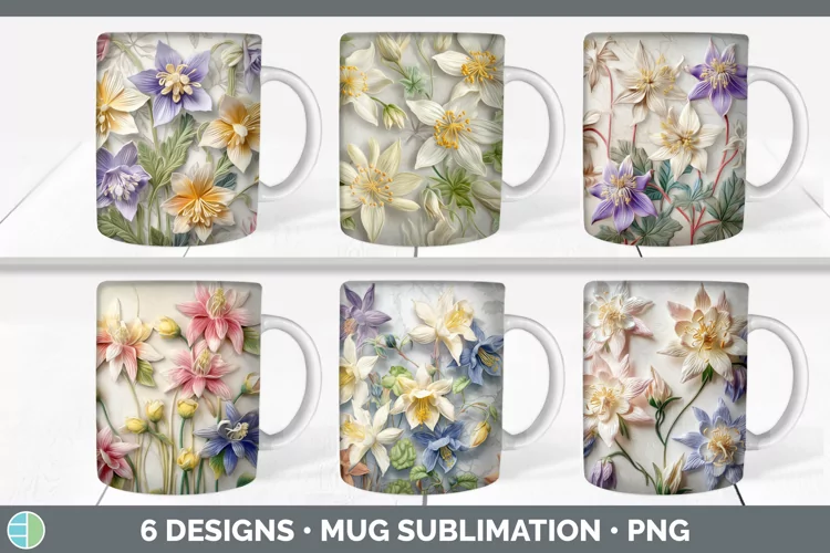 Similar Design Products to 3D Columbine Flowers Mug Wrap | Sublimation Coffee Cup Desig