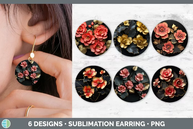 Similar Design Products to 3D Gold Begonia Flowers Round Earrings | Sublimation Earring