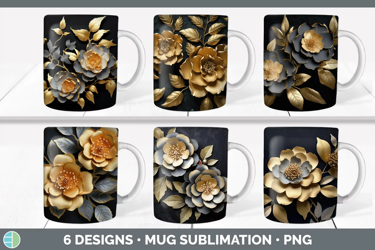 Similar Design Products to 3D Gold Camellia Flowers Mug Wrap | Sublimation Coffee Cup D