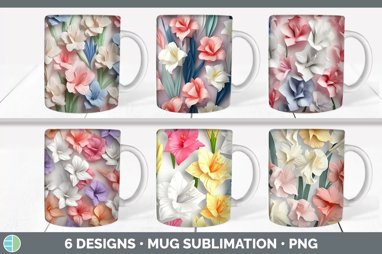 Bundle of six 3D Gladioluss Mug Wrap designs.