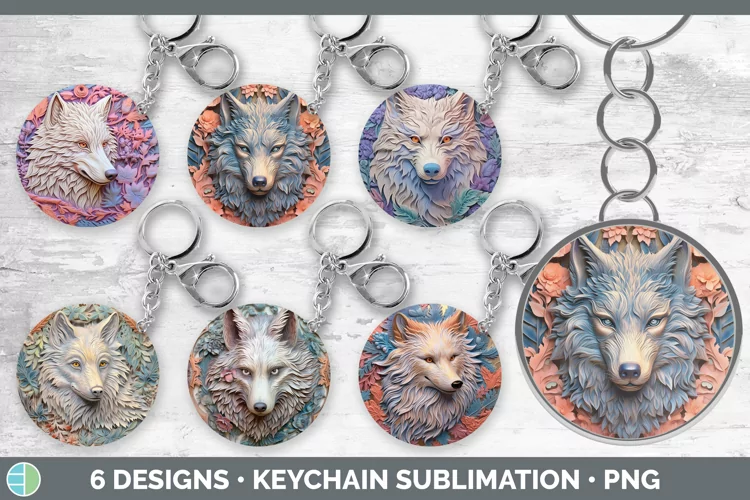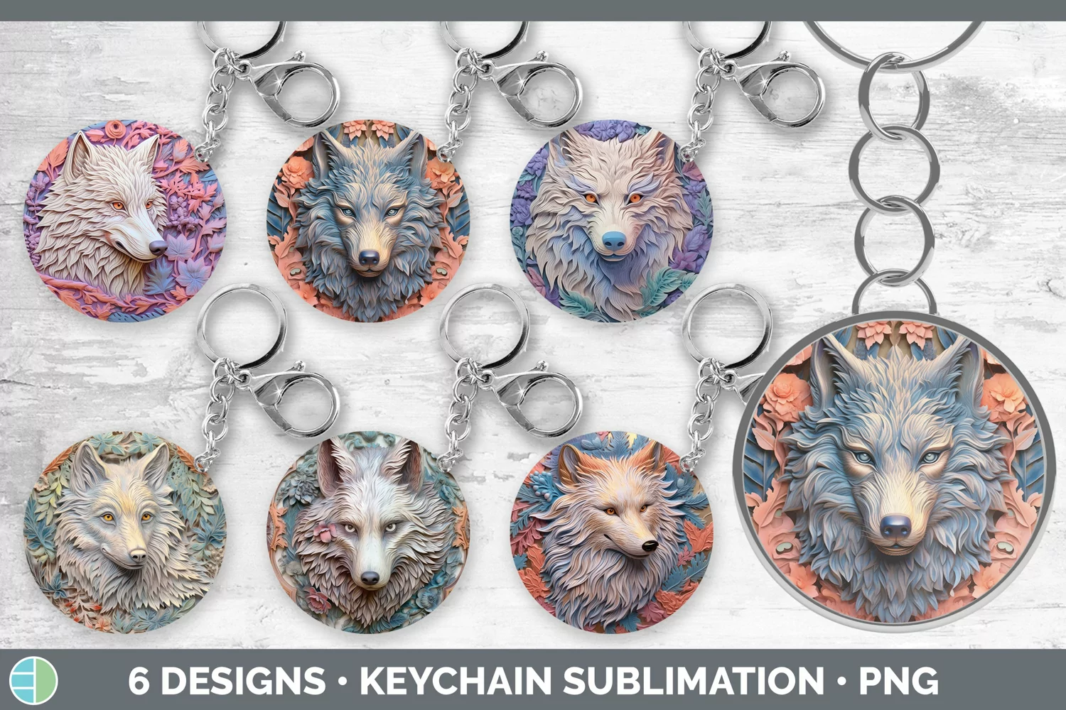 3D Wolf Keychain | Sublimation Keyring Designs Bundle