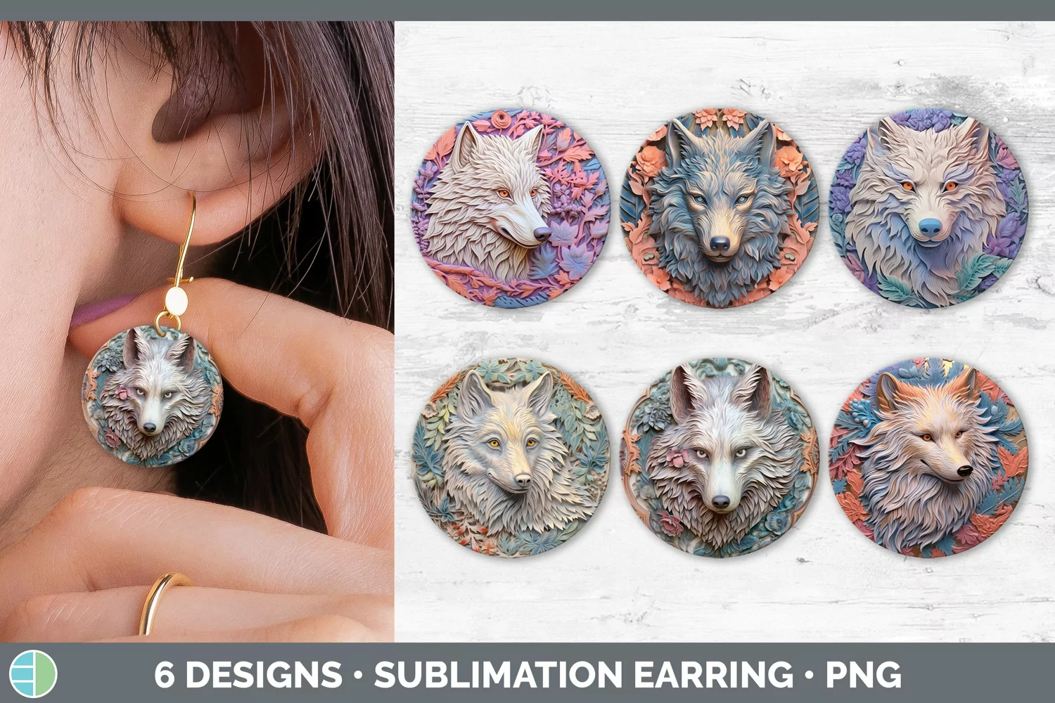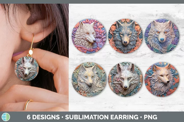 3D Wolf Round Earrings | Sublimation Earrings Designs Bundle