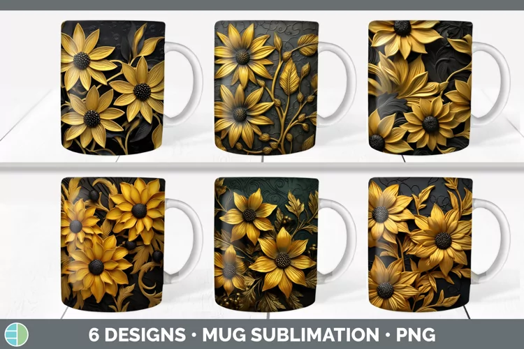 Bundle of six 3D Black-eyed Susans Mug Wrap designs.