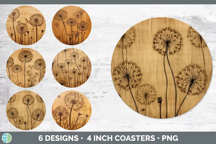 Similar Design Products to Wood Burned Dandelion Flowers Round Coaster | Sublimation Co