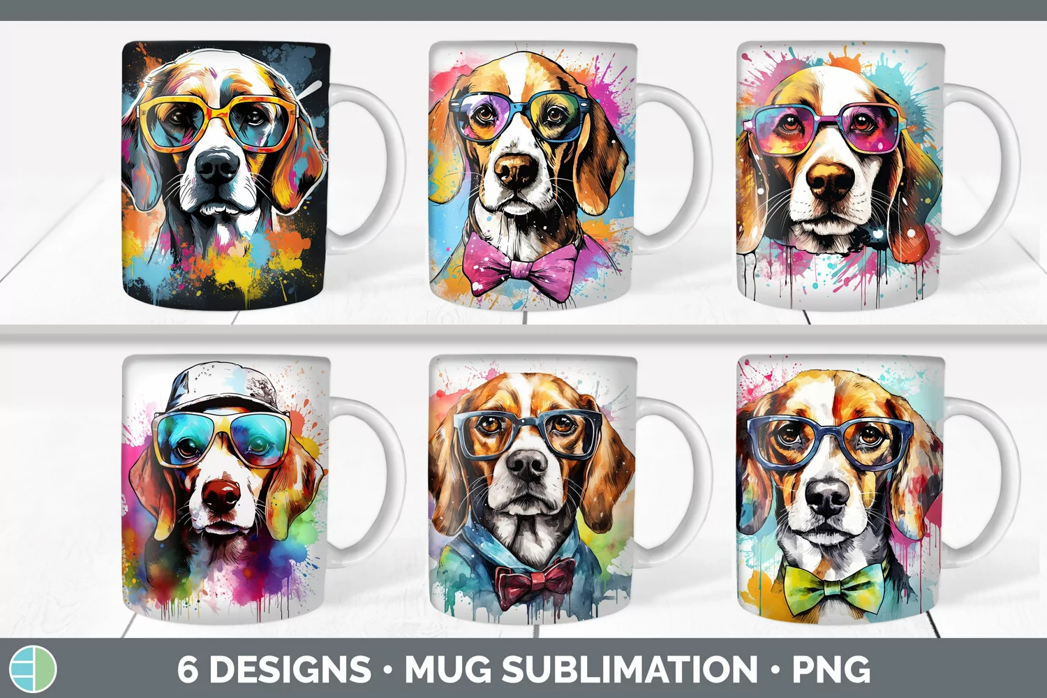 Hipster Beagle Dog Mug Wrap | Sublimation Coffee Cup Designs