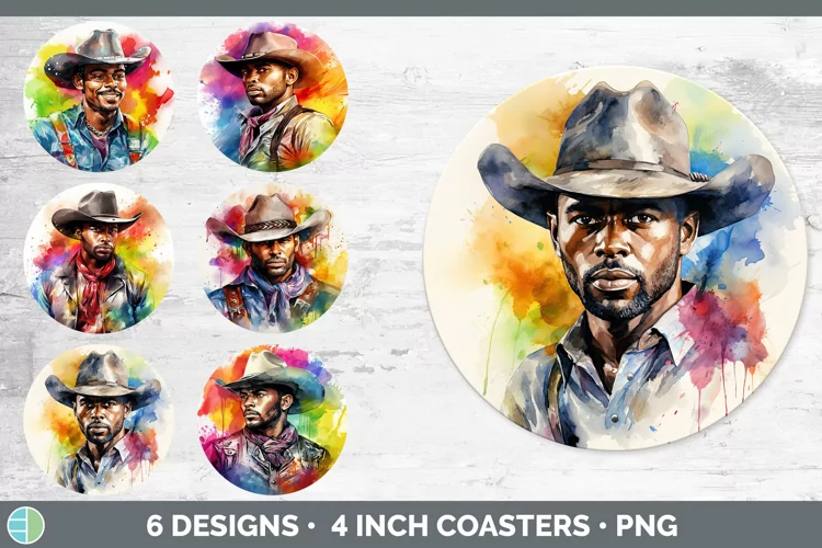 Bundle of six African American Cowboy Round Coaster designs.