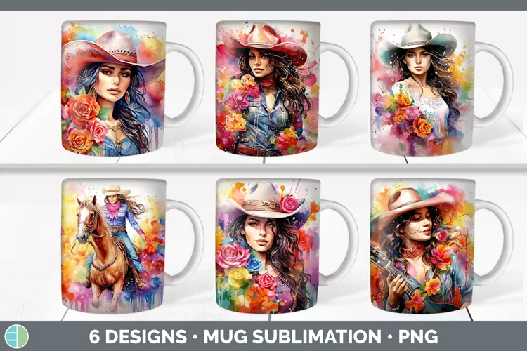Bundle of six Hispanic Cowgirl Mug Wrap designs.