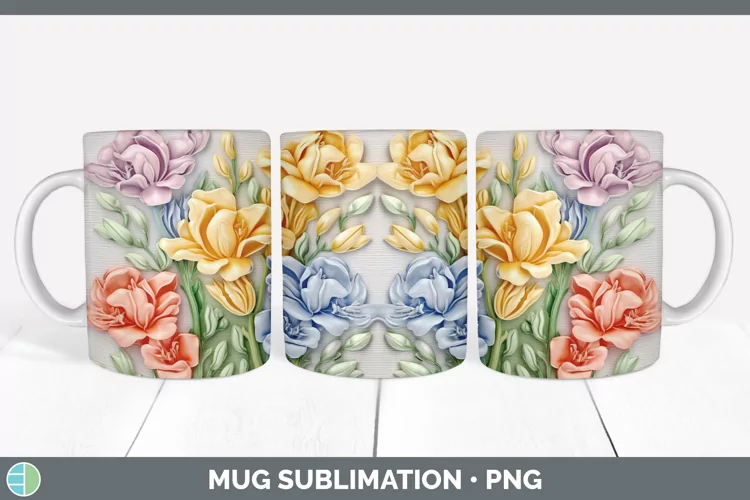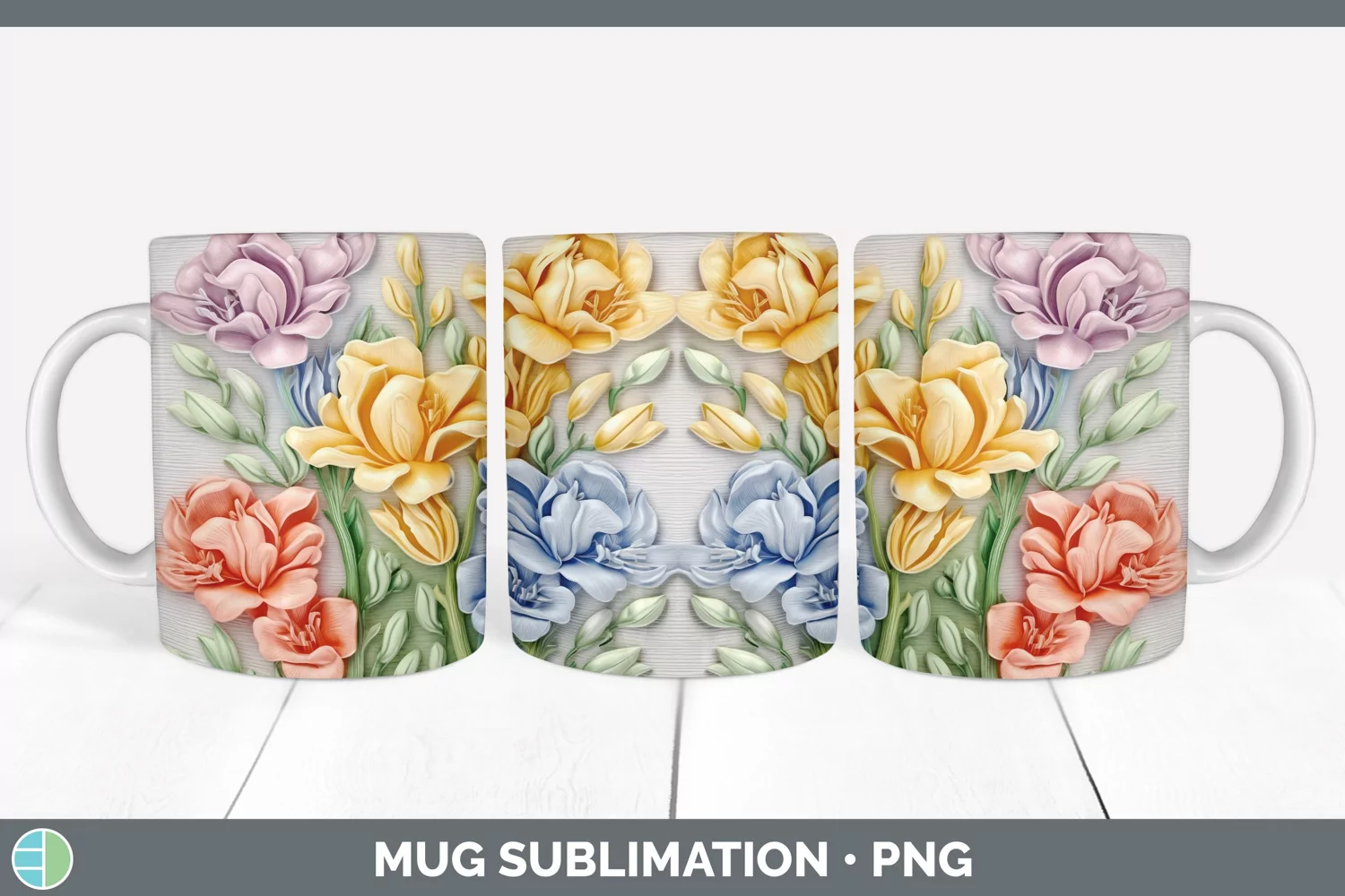 3D Freesia Flowers Mug Wrap | Sublimation Coffee Cup Designs