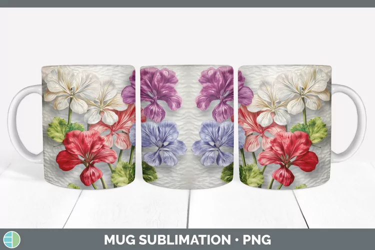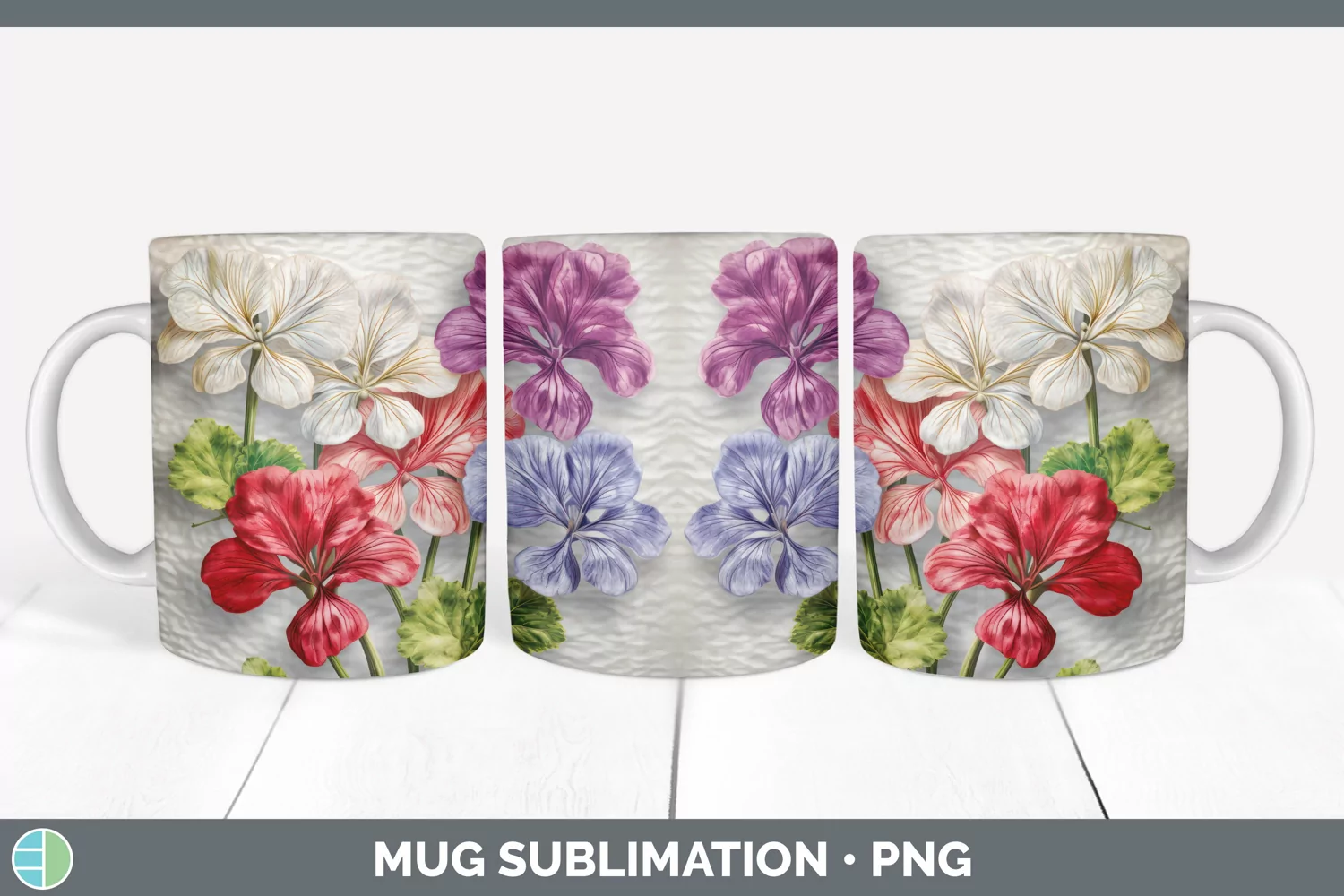 3D Geranium Flowers Mug Wrap | Sublimation Coffee Cup Design