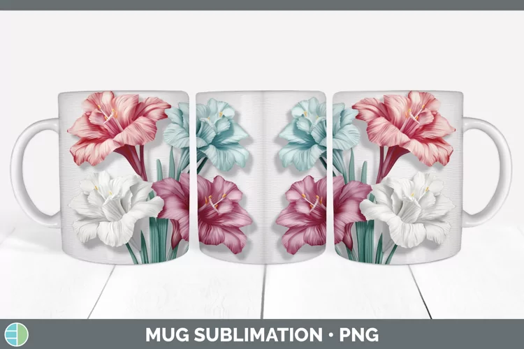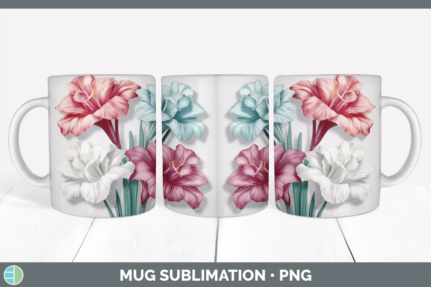 3D Gladiolus Flowers Mug Wrap | Sublimation Coffee Cup Desig