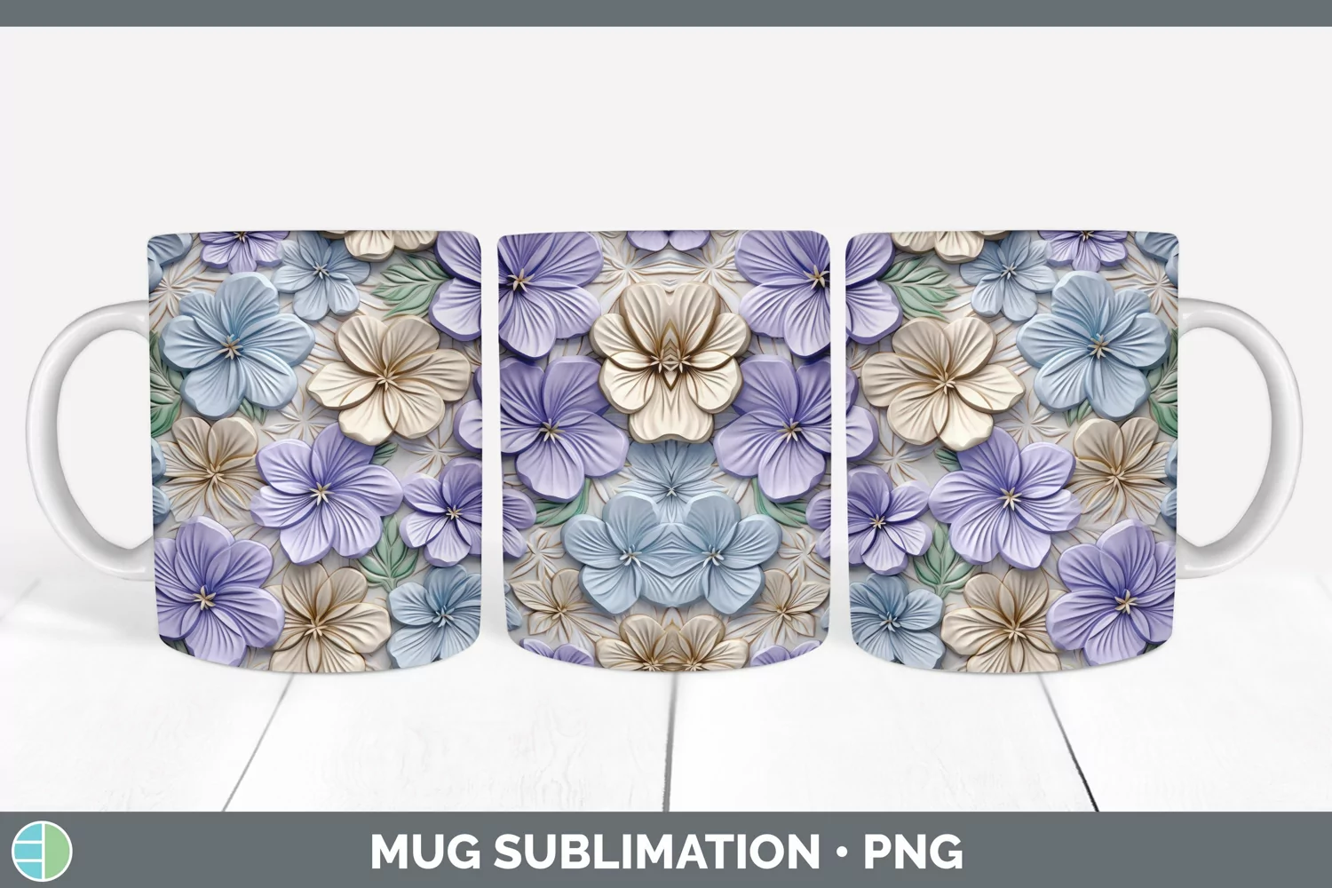 Similar Design Products to 3D Periwinkle Flowers Mug Wrap | Sublimation Coffee Cup Desi