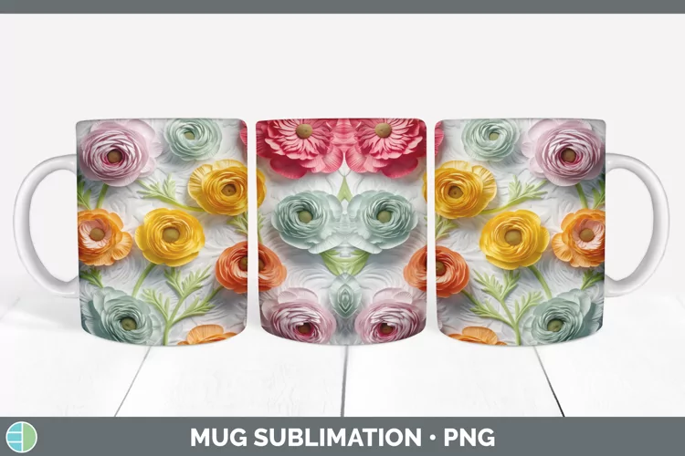 Similar Design Products to 3D Ranunculus Flowers Mug Wrap | Sublimation Coffee Cup Desi
