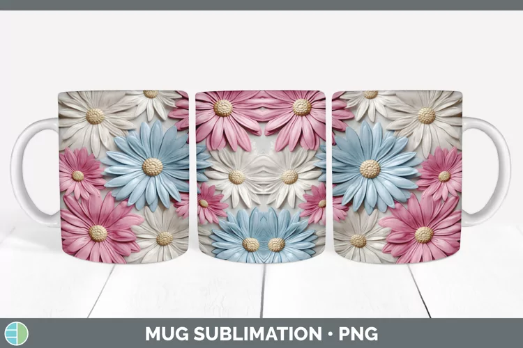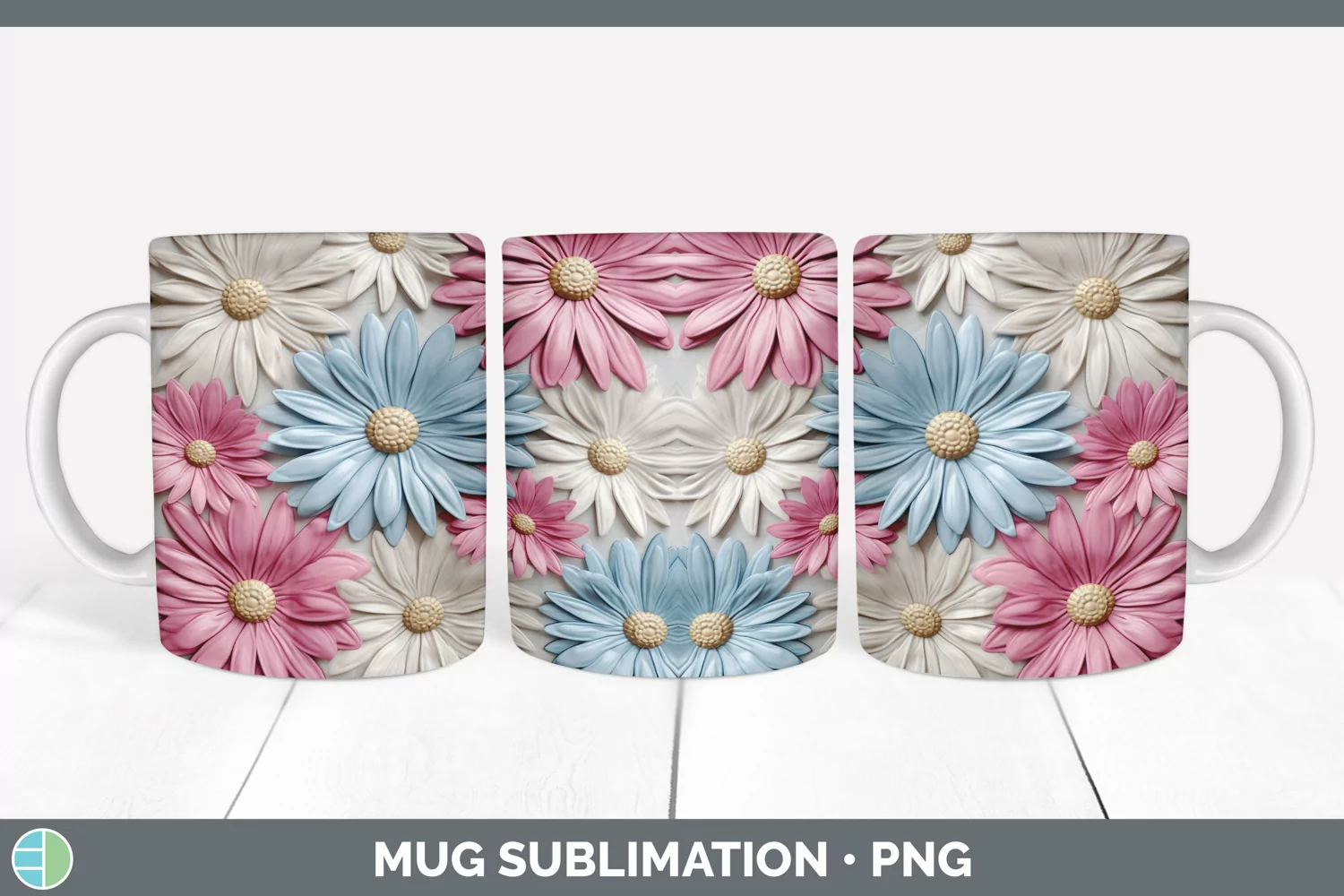 3D Daisy Flowers Mug Wrap | Sublimation Coffee Cup Designs