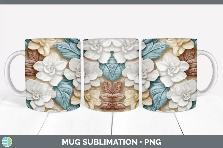 3D Gardenia Flowers Mug Wrap | Sublimation Coffee Cup Design