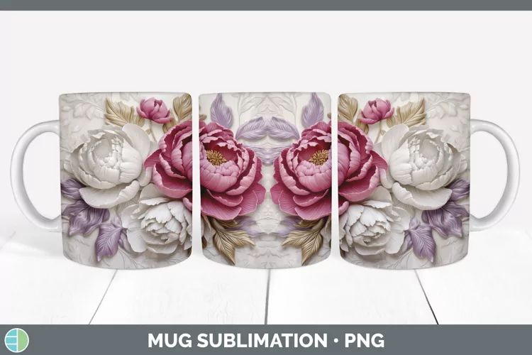 3D Peony Flowers Mug Wrap | Sublimation Coffee Cup Designs