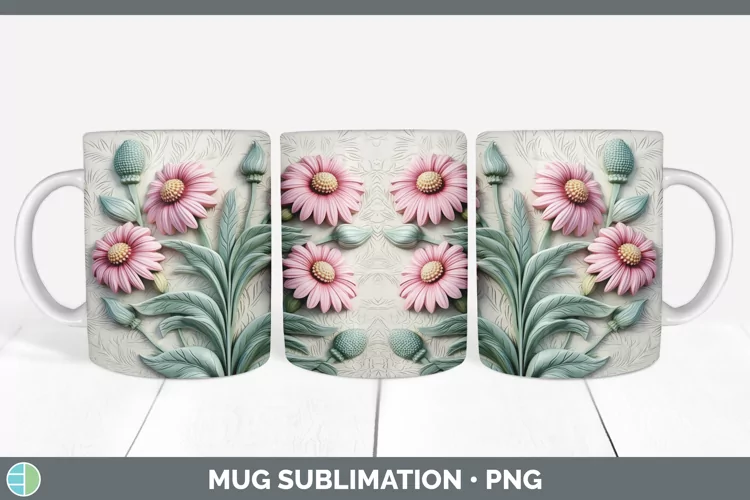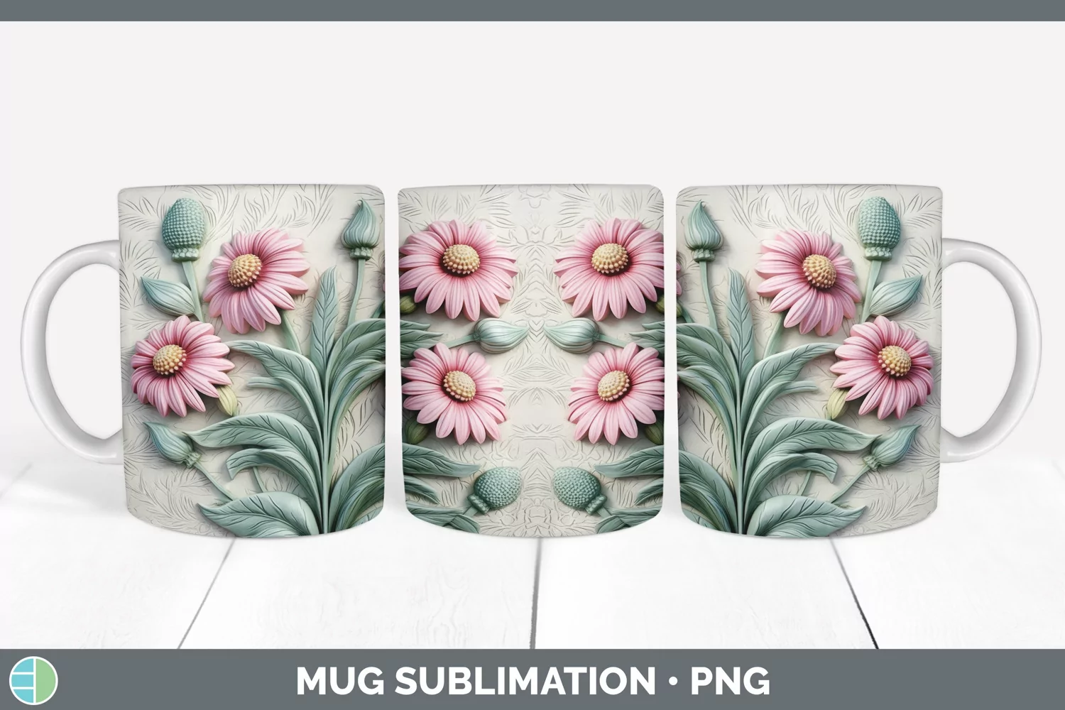 3D Coneflower Flowers Mug Wrap | Sublimation Coffee Cup Desi