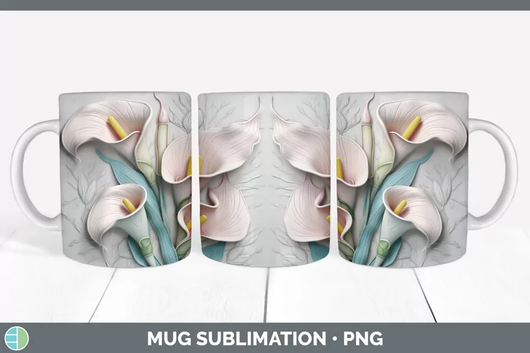 3D Calla Lily Flowers Mug Wrap | Sublimation Coffee Cup Desi