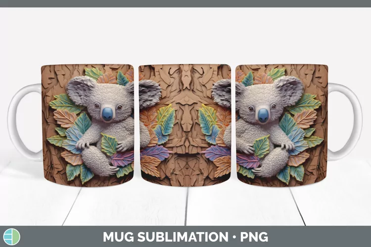 3D Koala Mug Wrap | Sublimation Coffee Cup Designs