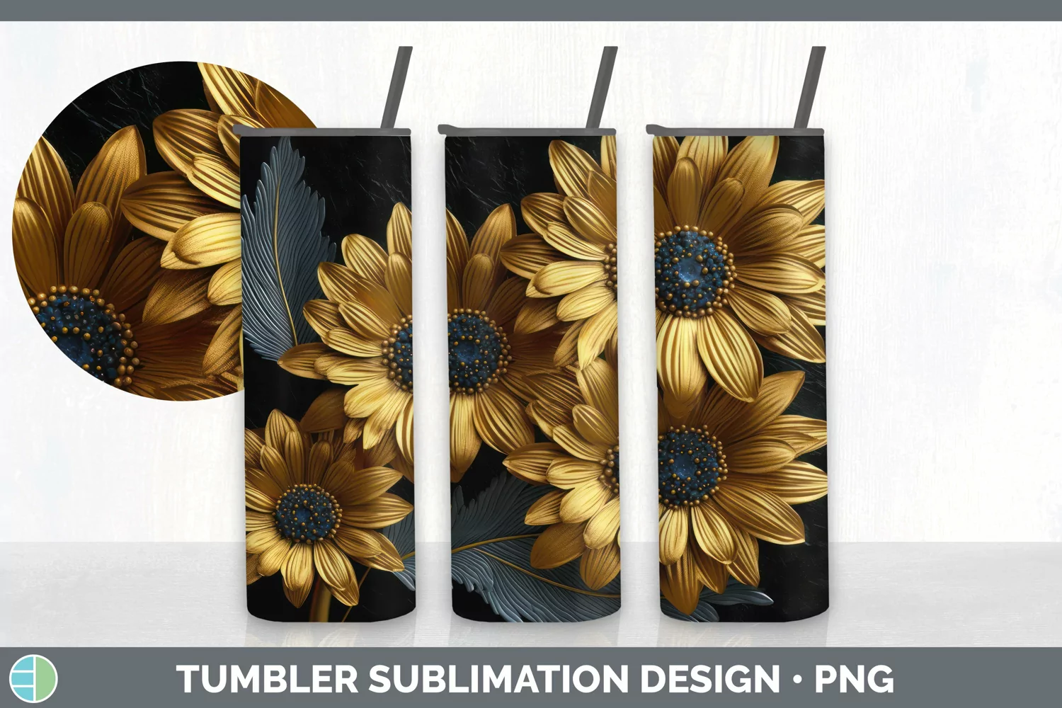 Similar Design Products to 3D Gold Gerbera Daisy Flowers Tumbler | Sublimation 20 oz Sk