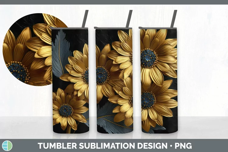 3D Gold Gerbera Daisy Flowers Tumbler | Sublimation 20 oz Sk example image 1