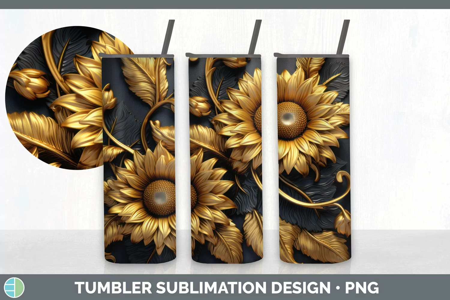 Similar Design Products to 3D Gold Sunflower Flowers Tumbler | Sublimation 20 oz Skinny