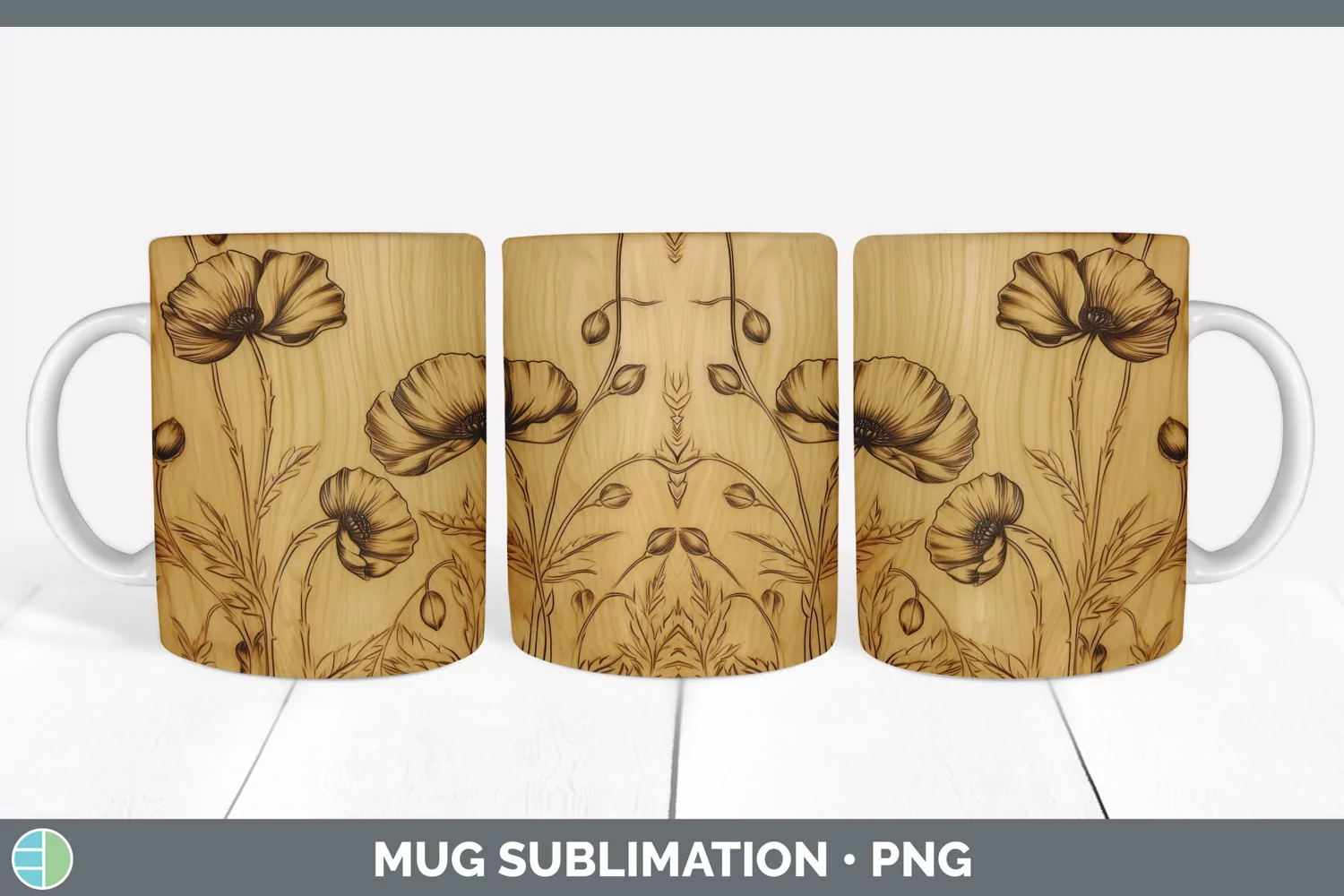 Wood Burned Buttercup Flowers Mug Wrap | Sublimation Coffee