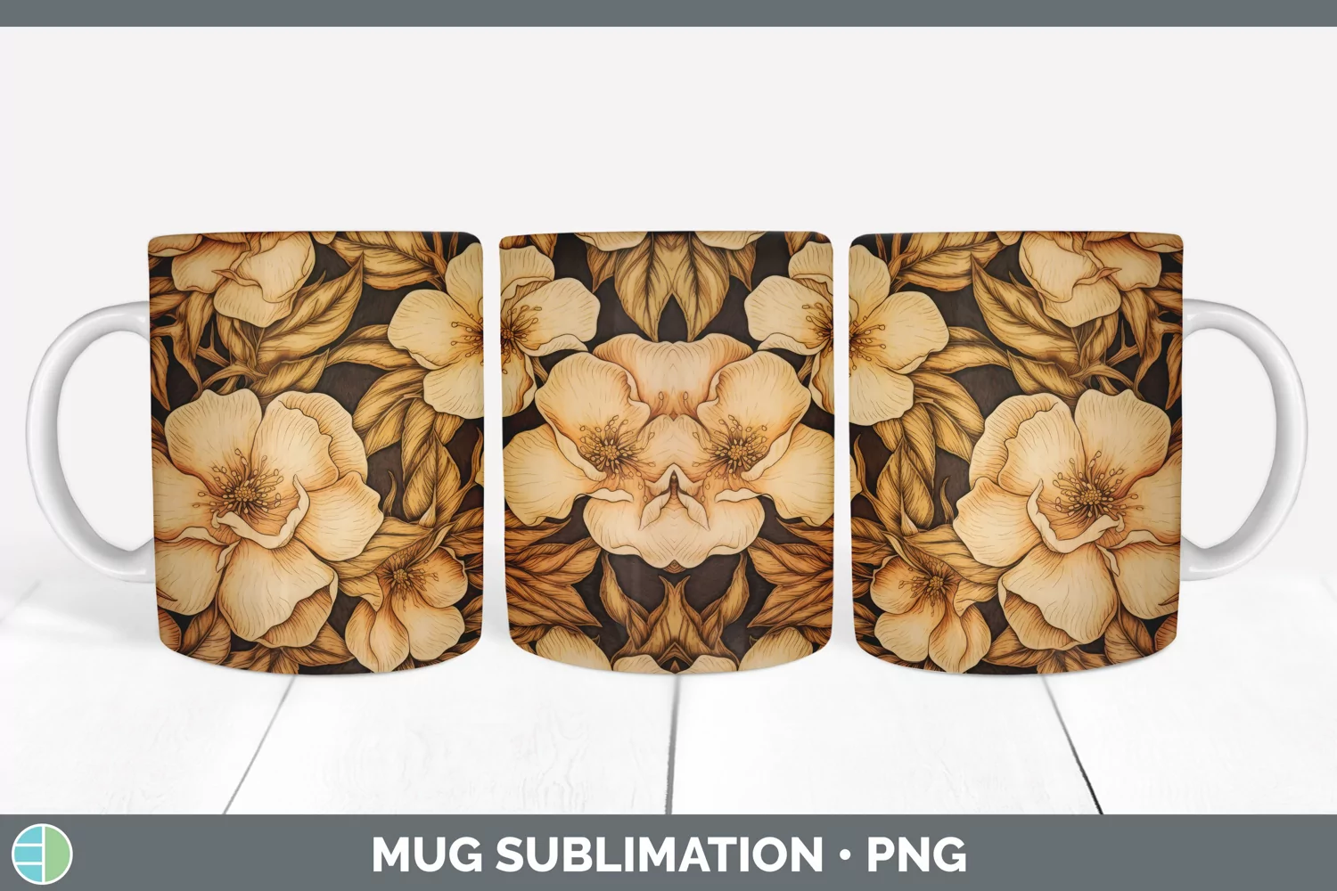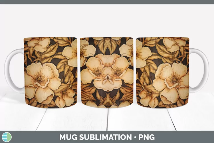 Wood Burned Camellia Flowers Mug Wrap | Sublimation Coffee C