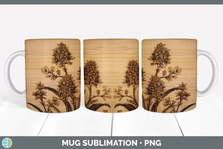 Wood Burned Hyacinth Flowers Mug Wrap | Sublimation Coffee C