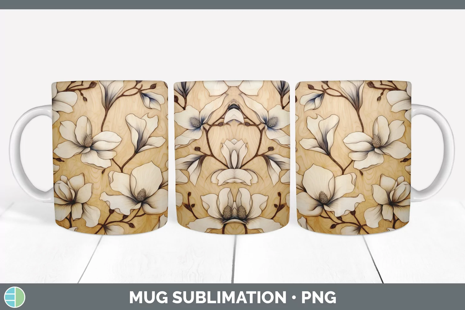 Wood Burned Magnolia Flowers Mug Wrap | Sublimation Coffee C example image 1