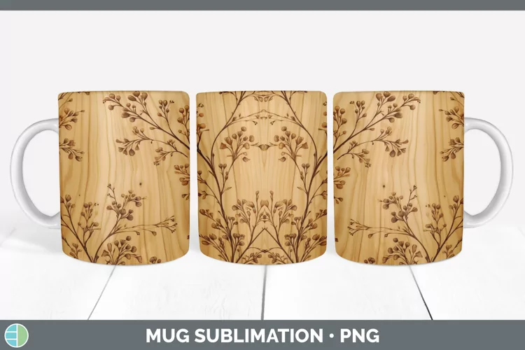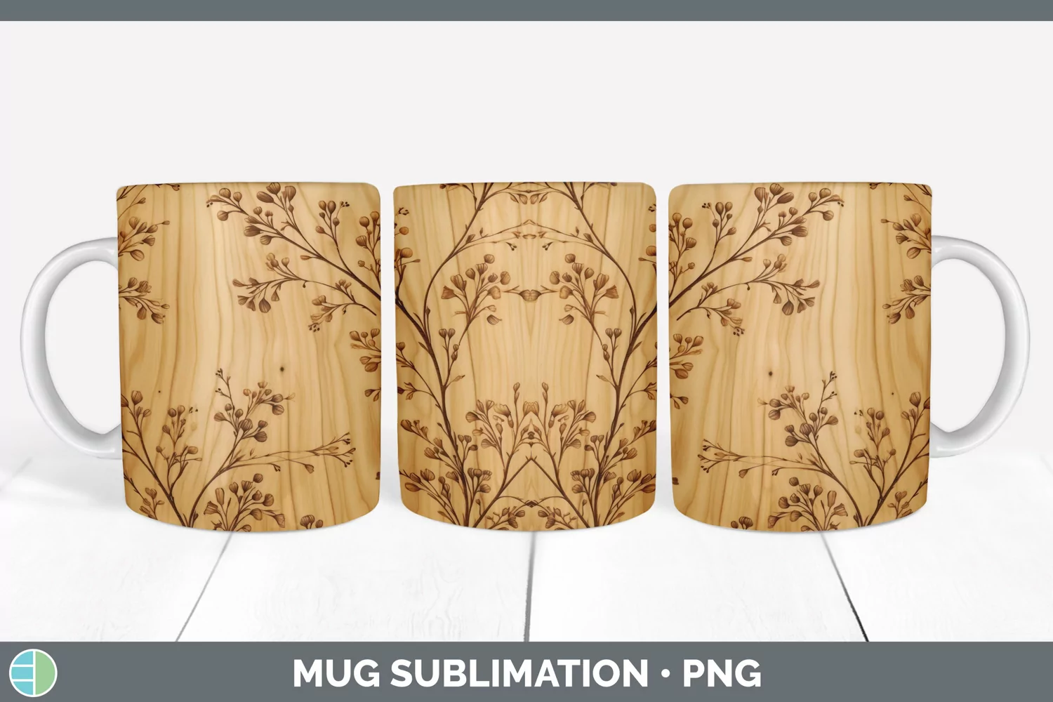 Similar Design Products to Wood Burned Acacia Flowers Mug Wrap | Sublimation Coffee Cup