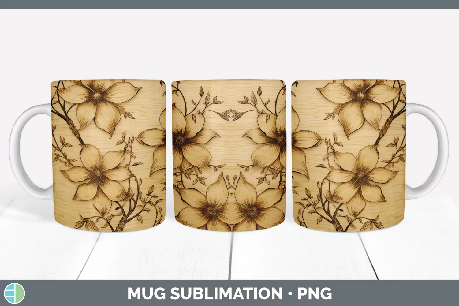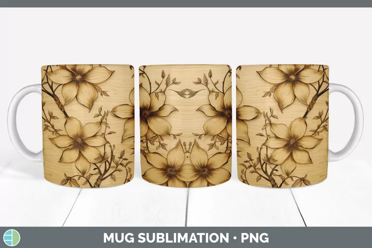 Wood Burned Clematis Flowers Mug Wrap | Sublimation Coffee C