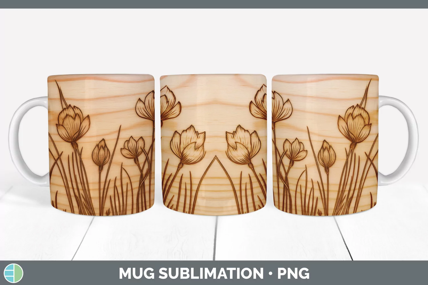 Wood Burned Crocus Flowers Mug Wrap | Sublimation Coffee Cup