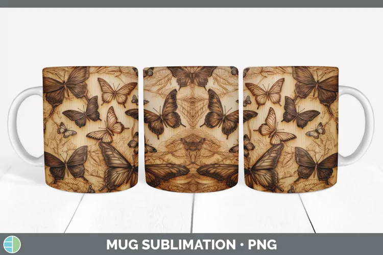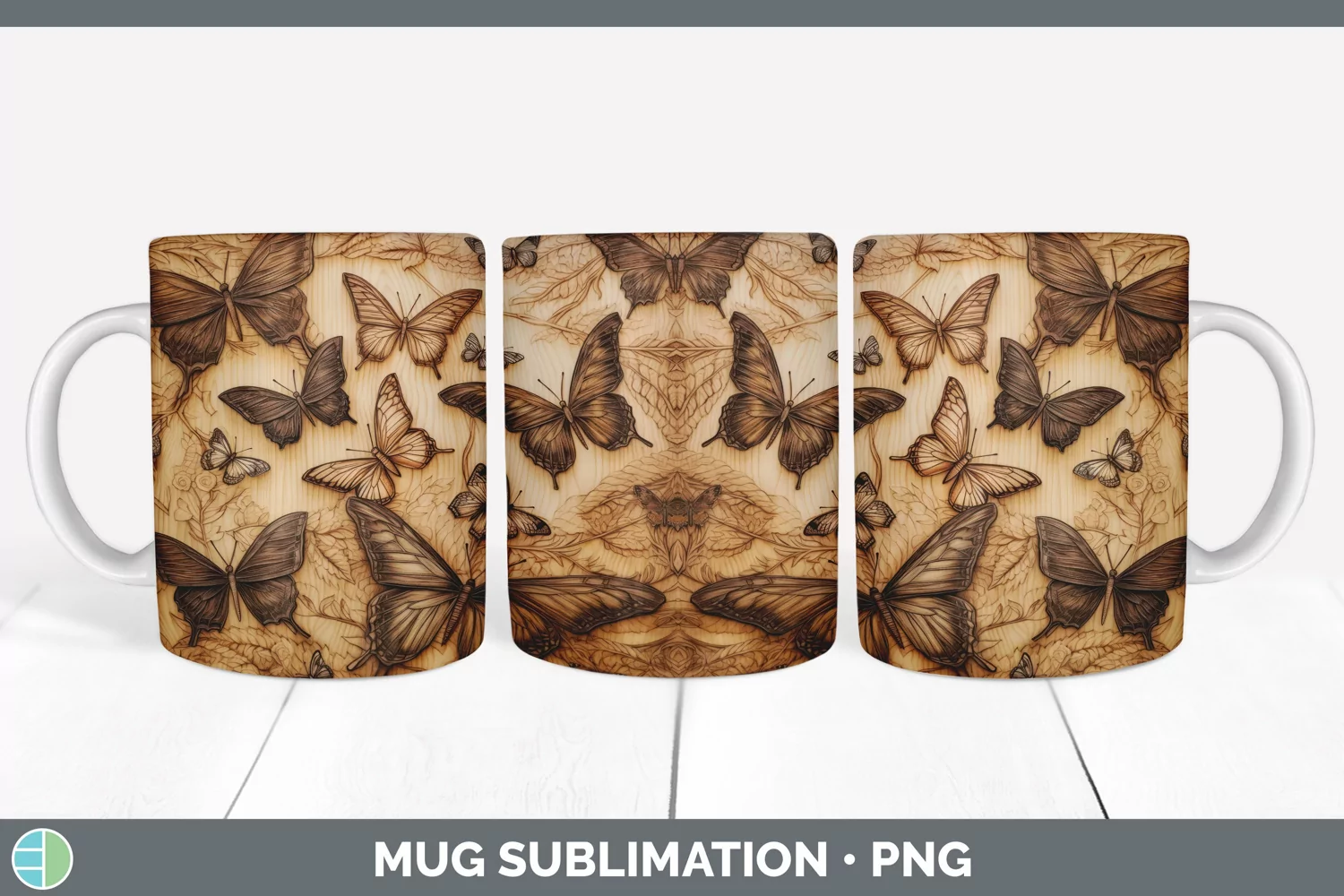 Wood Burned Butterflies Mug Wrap | Sublimation Coffee Cup De