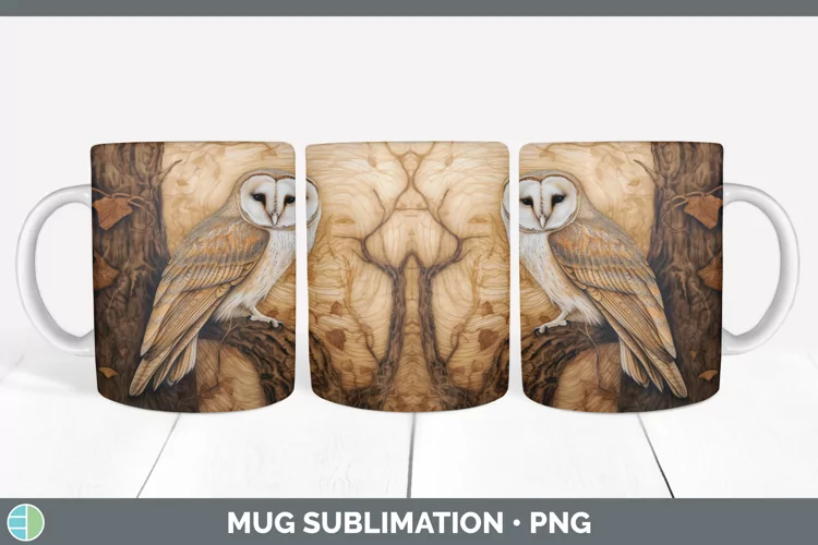 Wood Burned Owl Bird Mug Wrap | Sublimation Coffee Cup Desig