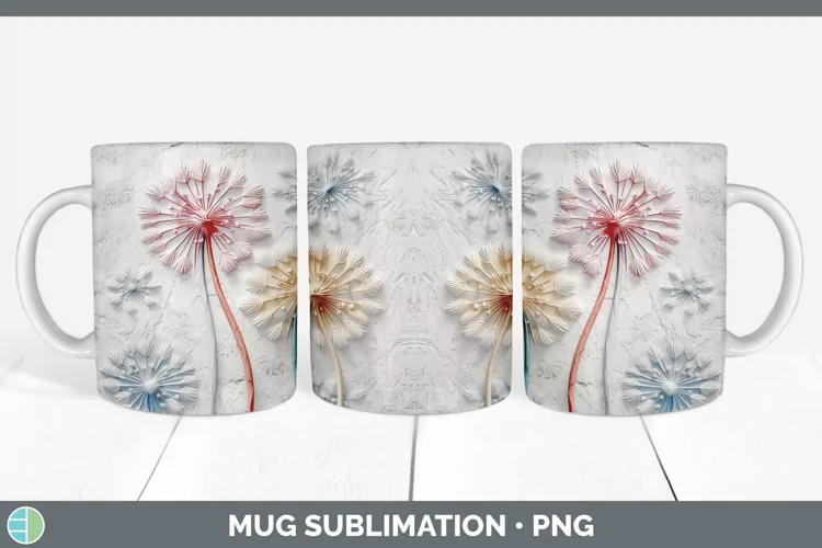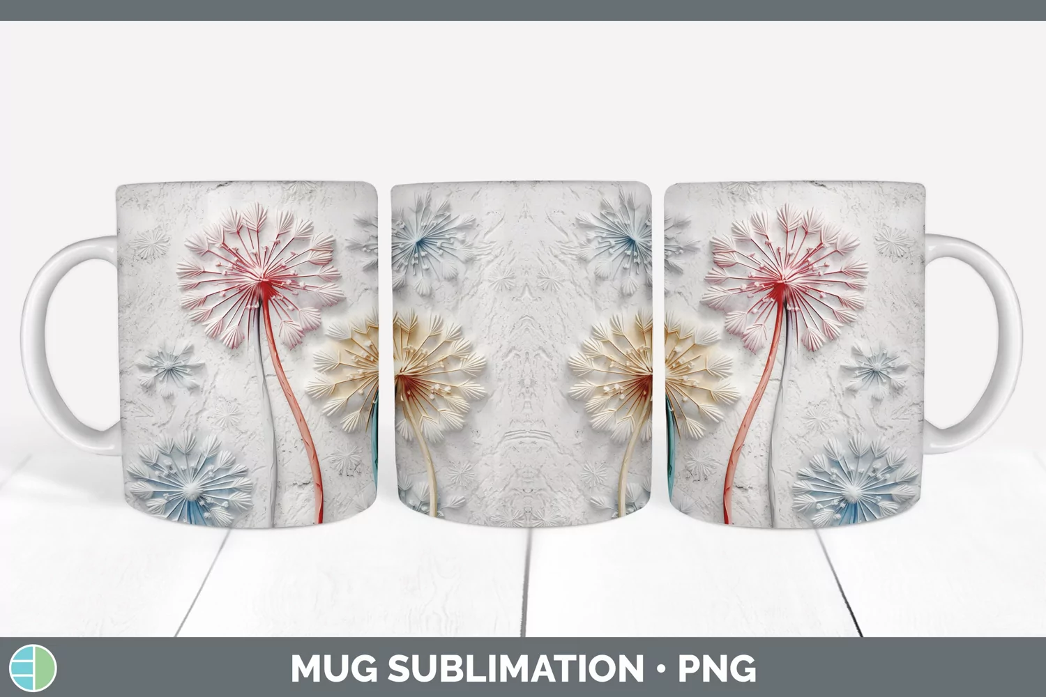 3D Dandelion Flowers Mug Wrap | Sublimation Coffee Cup Desig